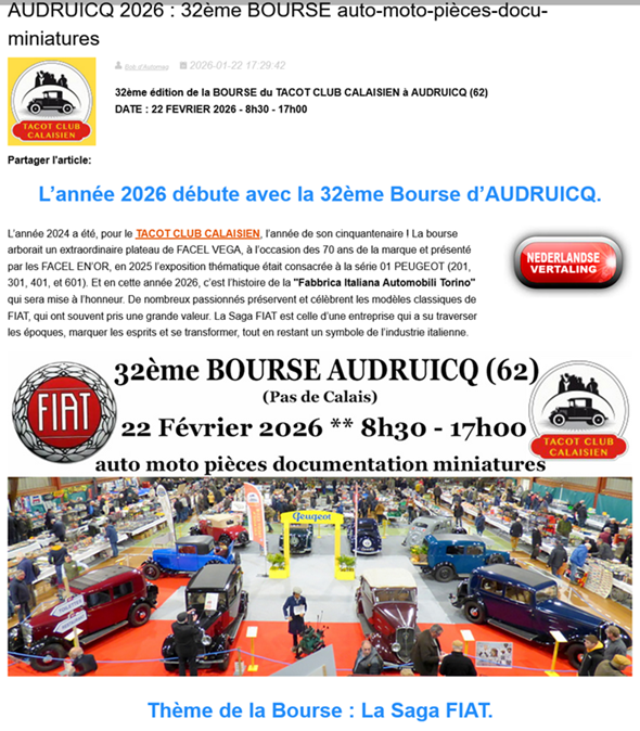 Voici un lien qui vous mène sur l’article paru sur Automag (magazine belge consacré à l’automobile de collection, site bilingue français-néerlandais qui assure notre promotion en Belgique et aux Pays Bas.) :