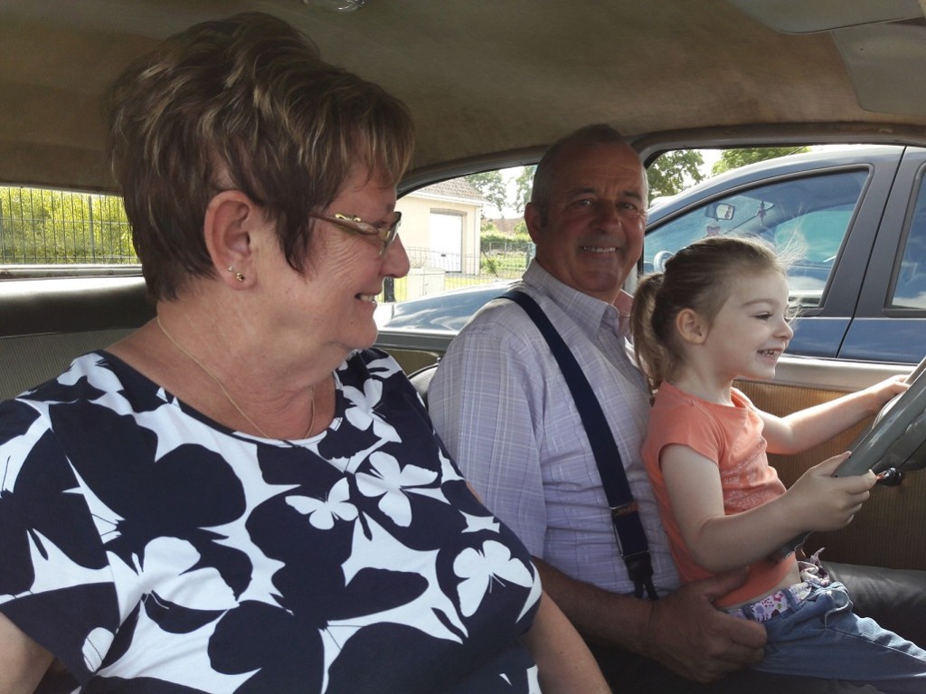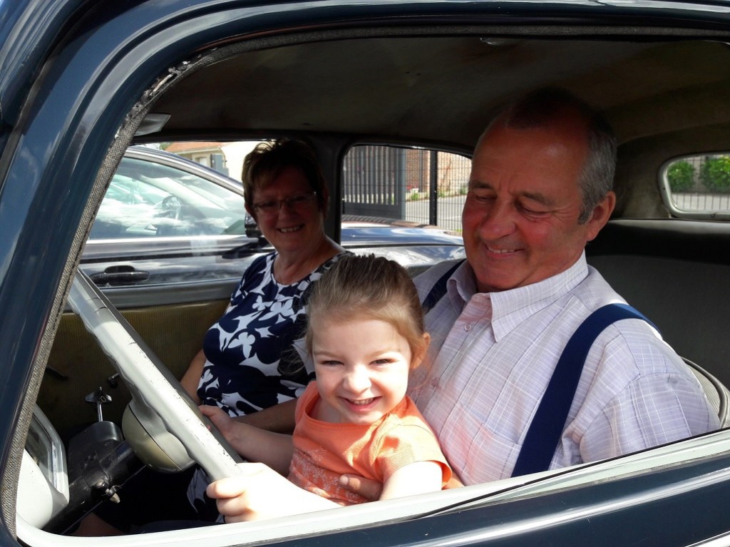 2014 : Naissance de Anna Guedj, arrière-arrière petite-fille de Georges, qui une fois assise à l’arrière de la voiture se lève tout doucement pour venir s’accouder sur les dossiers avant et me glisser à l’oreille : Papy, elle est belle ta voiture, et vas-y fais tut-tut…