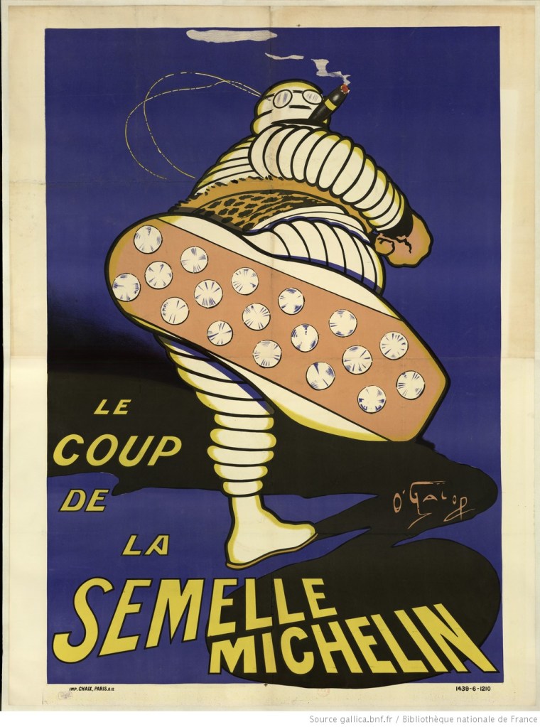 O’Galop était le pseudonyme de Marius Rossillon, affichiste et dessinateur humoristique d’origine lyonnaise. Pour Michelin, il faudrait un livre complet pour en conter l’histoire qui débuta en 1889.