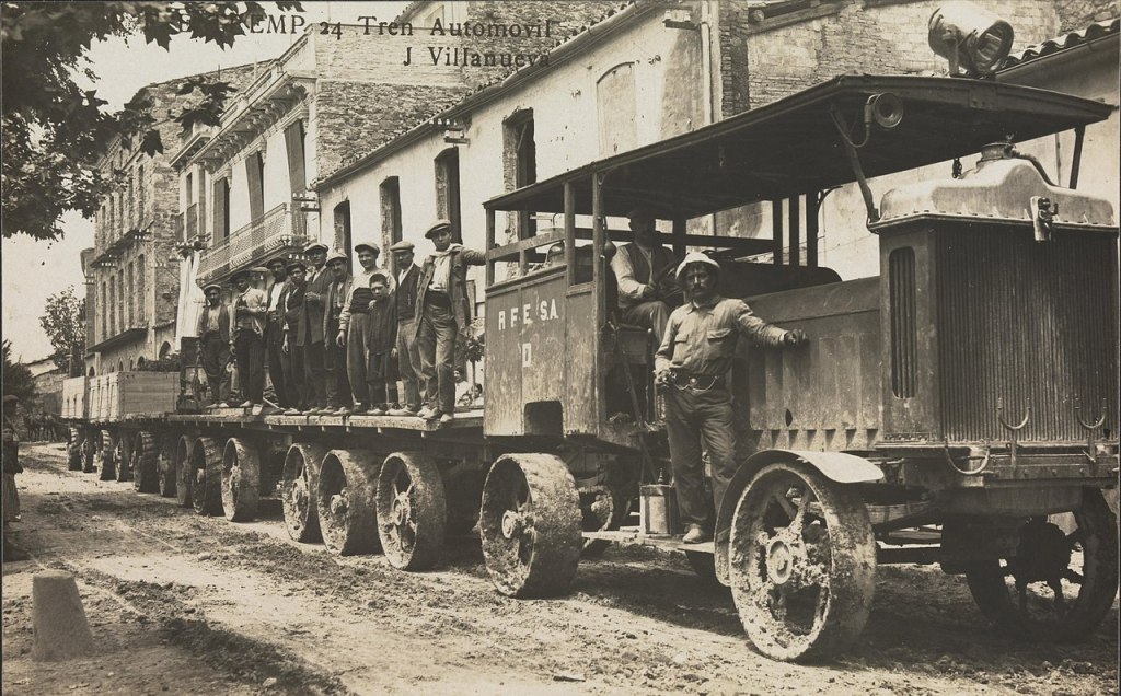 Quelques informations intéressantes sur l’histoire des trains Renard m’ont été fournies par un site internet australien. Le premier train Renard fut exposé au Salon de l’automobile de Paris en 1903 sur le stand Darracq. Il semble donc vraisemblable que la motorisation de l’ensemble était assurée par un moteur Darracq. Le véhicule tracteur était accouplé à des voitures à six roues dont un essieu propulseur. Il pouvait tracter jusqu’à six voitures, chacune étant reliée à la précédente par un arbre de transmission pour assurer l’entraînement de chaque voiture. Dès 1904, un certain Mr. Surcouf apporte de nombreuses améliorations. L’une des difficultés étant de trouver un moteur suffisamment puissant.