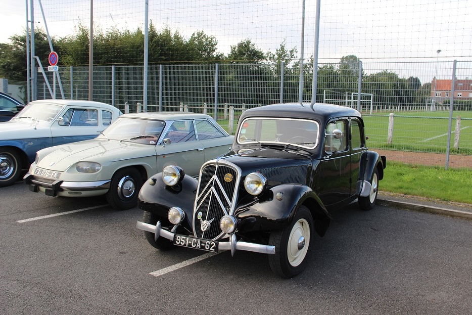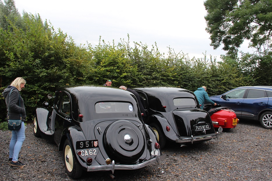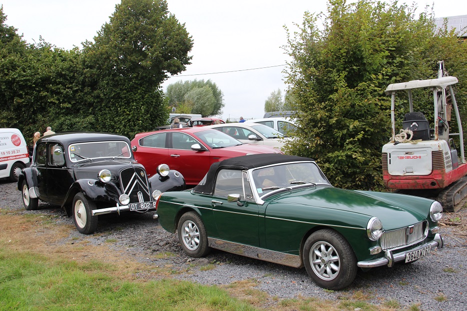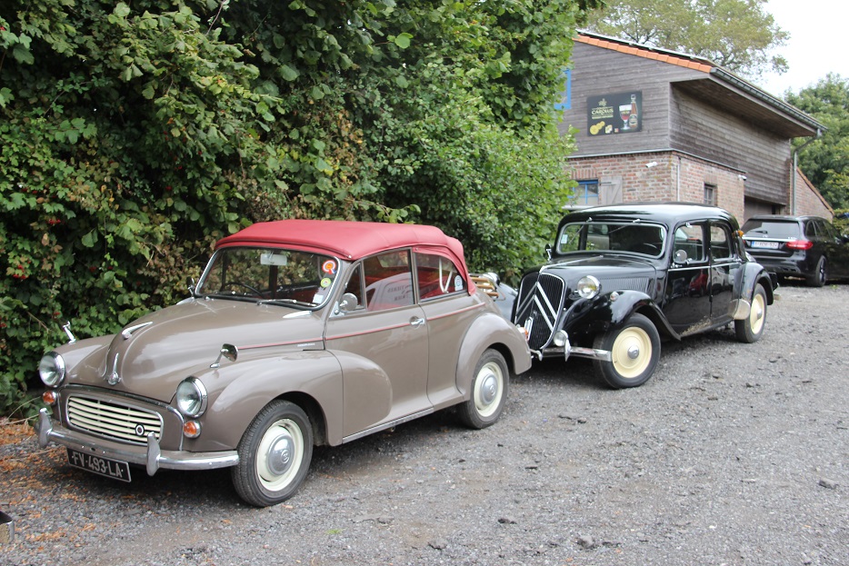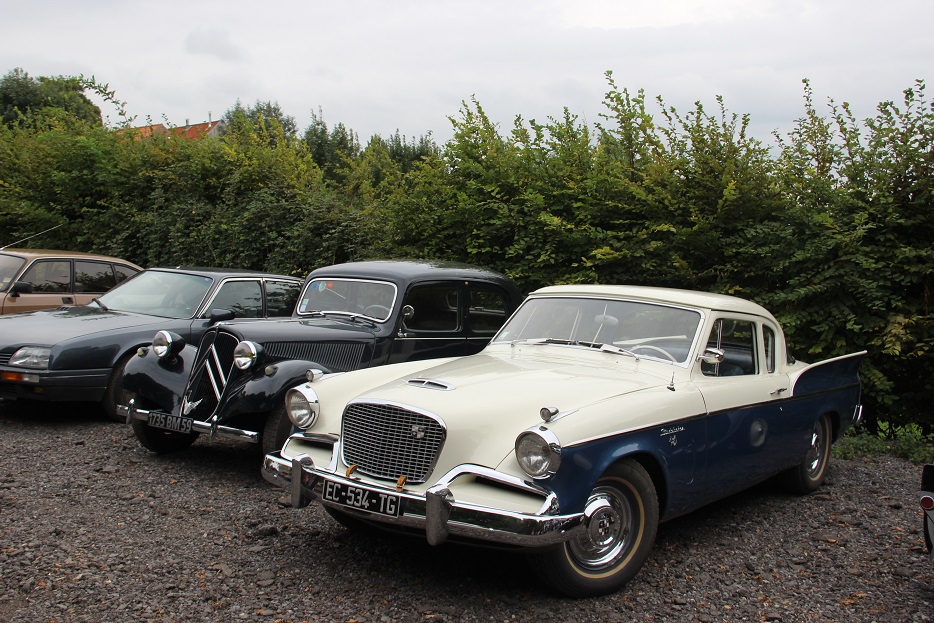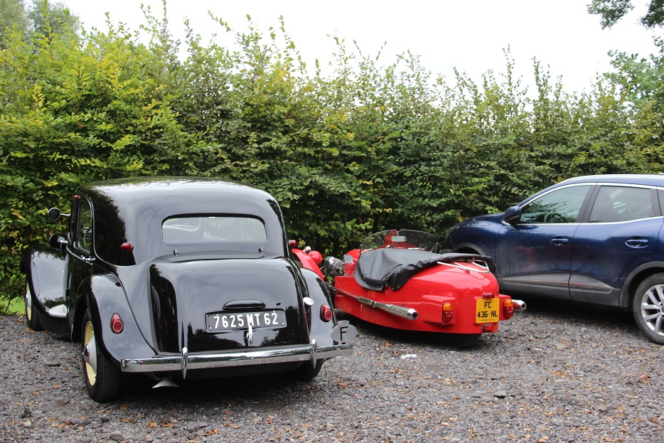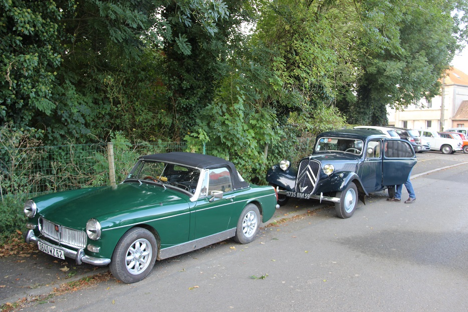 Vingt et un équipages étaient au rendez-vous et les voitures représentaient toutes les décennies de l’après-guerre ; la plus âgée étant une Chevrolet de 1946, la plus récente une Mini de 1991. Les française étaient bien sûr les plus représentées, et particulièrement Citroën avec pas moins de 8 représentantes dont 6 Traction, mais on trouvait aussi une Panhard 24 BT, une Aronde Simca, 2 Peugeot et quelques étrangères venaient compléter le plateau avec 4 anglaises : une MGB, une Mini, une Morris Minor et un 3 roues Triking, 2 Américaines : la Chevrolet déjà nommée de 1946 et une Studebaker de 1956 et une allemande avec une Ford Capri.