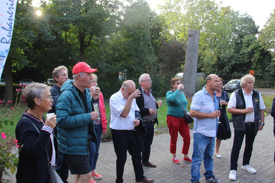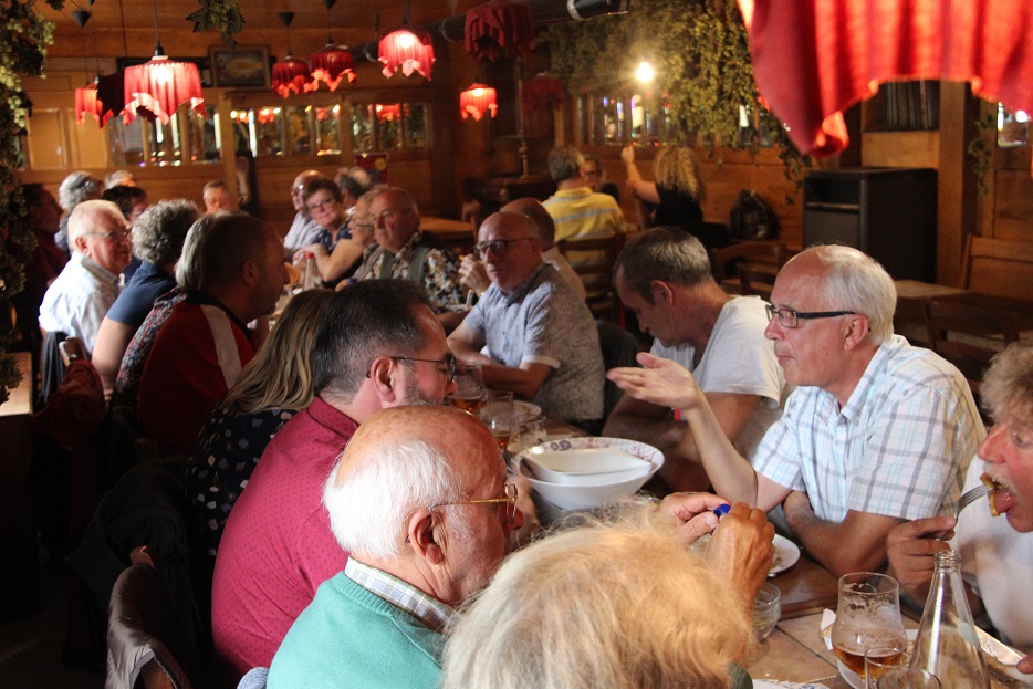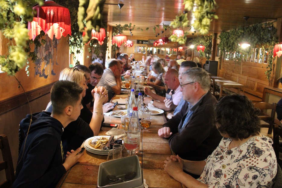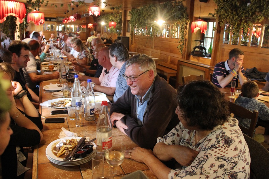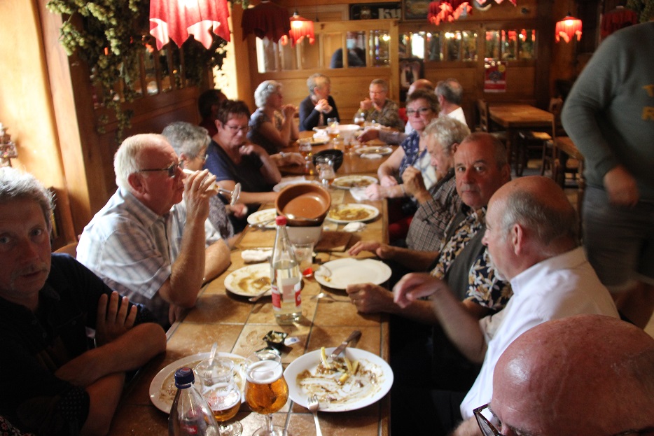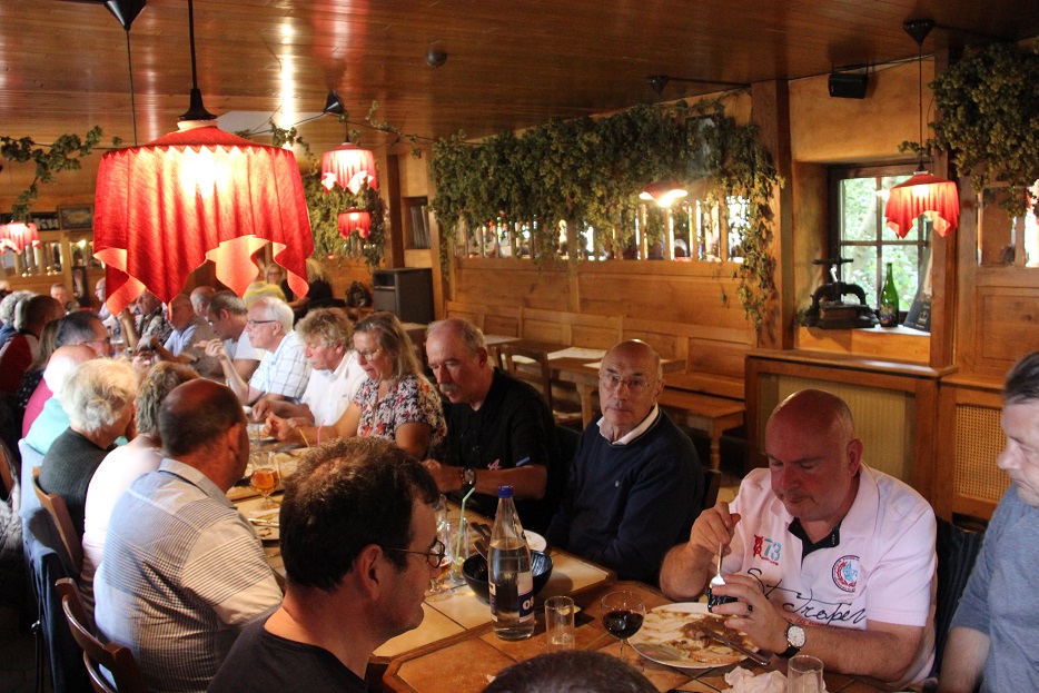 Après cette visite il était temps de reprendre la voiture et de trouver le restaurant qui nous attendait : le Kauwackers et tout le monde, après un apéritif bien mérité, fit bonne chère avec une carbonnade flamande et ses frites avec ce qu’il fallait de bière. Nous avons eu la surprise de découvrir de la vigne plantée à côté de notre restaurant et peut-être un jour mangerons-nous notre carbonnade avec un crû local…