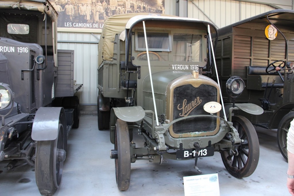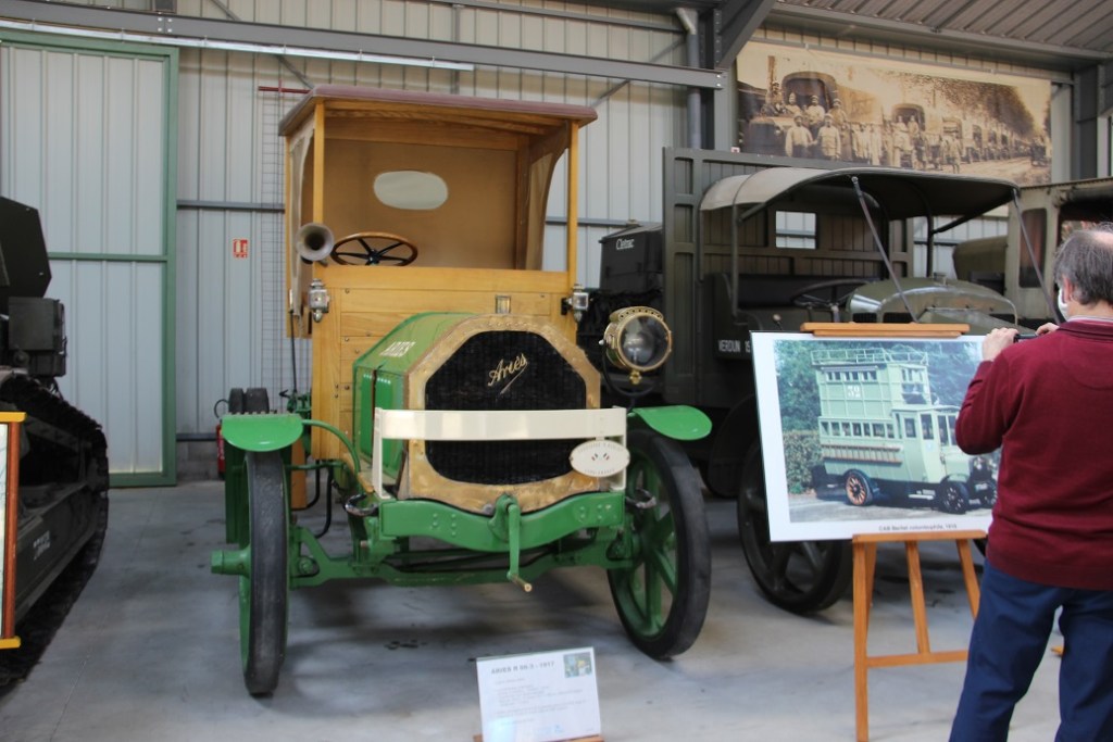 Marius Berliet est visionnaire à plus d’un titre, il anticipe l’essor du transport par route des marchandises et donc du besoin croissant en camions. Les premiers sont assemblés en 1907 et son modèle CBA de 1913 arrive à point nommé lorsqu’éclate le Première Guerre mondiale. L’armée française en commandera plus de 15.000 durant les années de conflit. Durant cette période, la production d’automobiles est arrêtée complètement et remplacée par la fabrication d’obus et l’assemblage sous licence de chars Renault FT. L’usine de Vénissieux est la seule à disposer de l’équipement industriel nécessaire pour pouvoir réaliser la tourelle pivotante à 360° de ces chars. C’est dire l’avance technologique de l’entreprise. Celle-ci se retrouve aussi dans les recherches sur l’usage d’autres combustibles que l’essence jusqu’alors seule à être utilisée. Dès 1926, un moteur gazogène à bois cru est mis au point. En 1930, une motorisation diésel est proposée ; sur les 25.000 camions de type GDR construits en 17 ans d’existence, 45% roulent au diésel, 31% sont des Gazobois et 24% des véhicules à essence. Berliet équipe une fourgonnette, modèle VTS, d’un petit moteur électrique, nous sommes en 1924 comme quoi cette technologie était déjà disponible et fonctionnelle. Comme nous le fait remarquer notre guide, les développements actuels du moteur électrique trouvent leur base sur ces premières expériences.