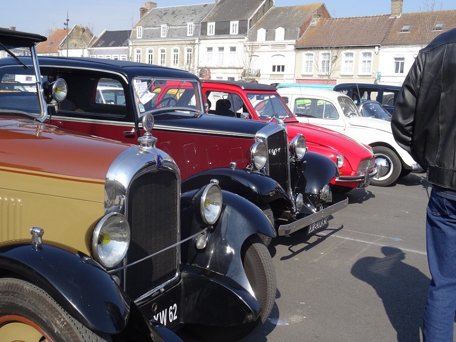 Le beau temps étant de la partie, ce furent plusieurs dizaines de voitures qui se sont stationnées sur la place d’Audruicq entre 9h00 et 12h00. Certaines ne sont restées que peu de temps et d’autres ont profité du soleil printanier toute la matinée. Le panel de voitures allait des années 20 au début des années 90, mais le plus simple, regardez les photos. La diversité était de mise.