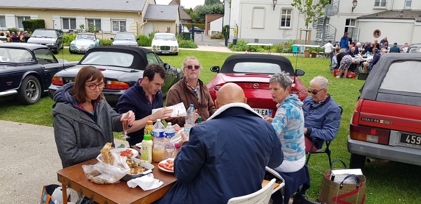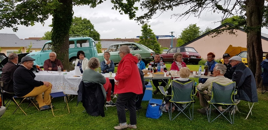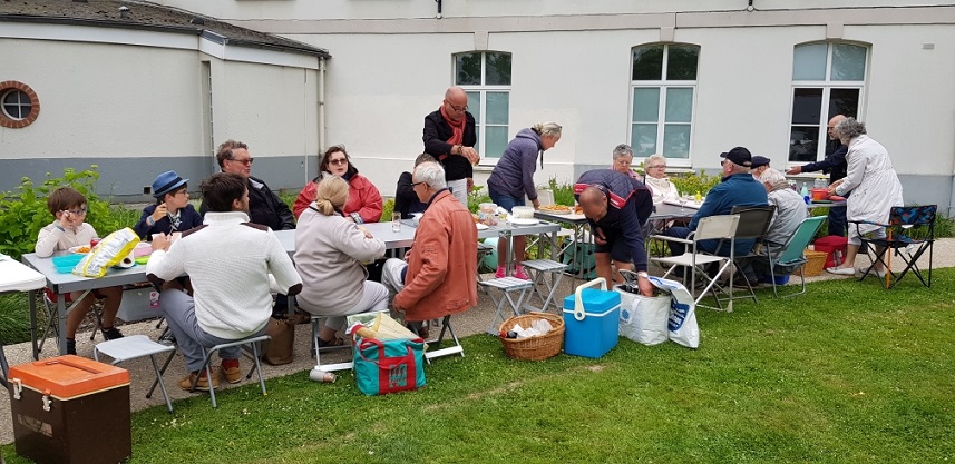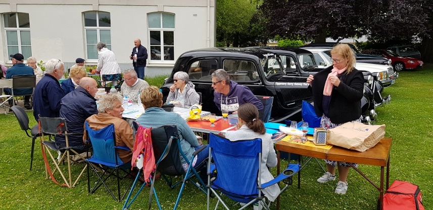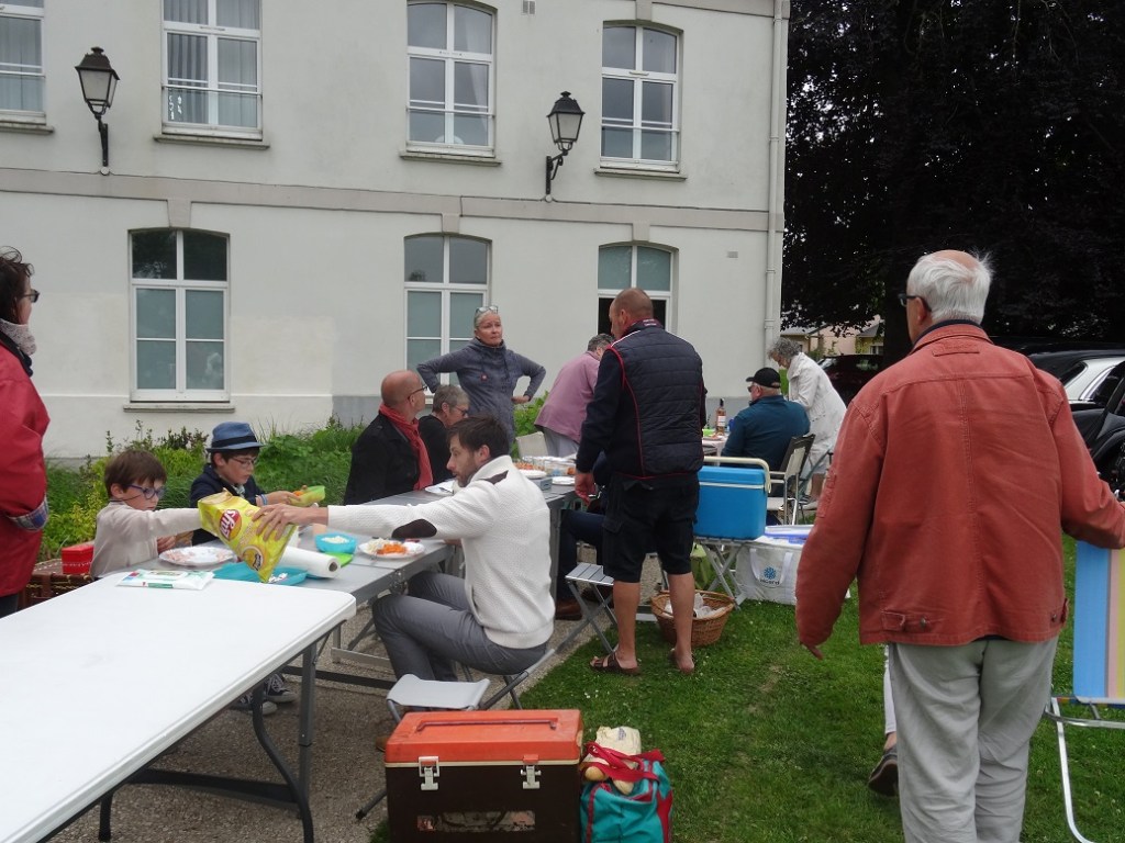 Retour au « Château » d’Audruicq (l’hôtel de ville) après 3 h de route pour l’apéro, offert par le Club, et le pique-nique !