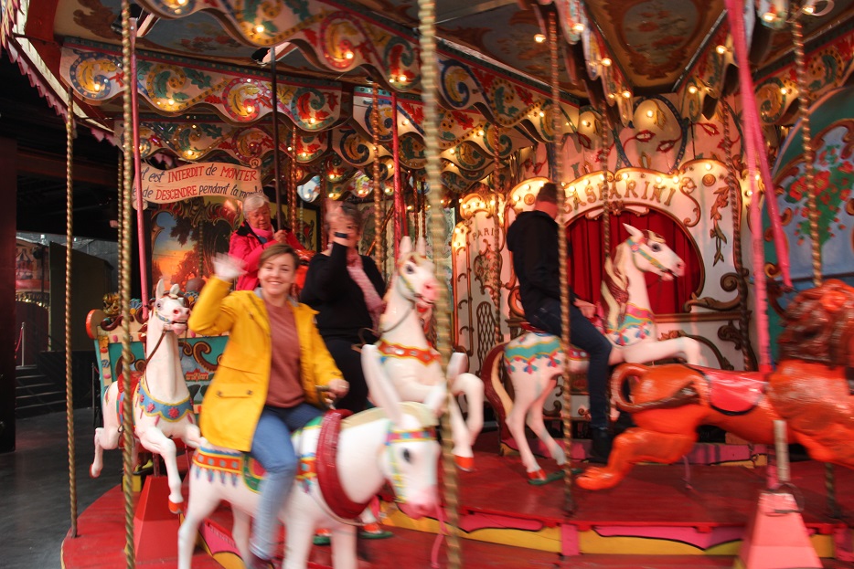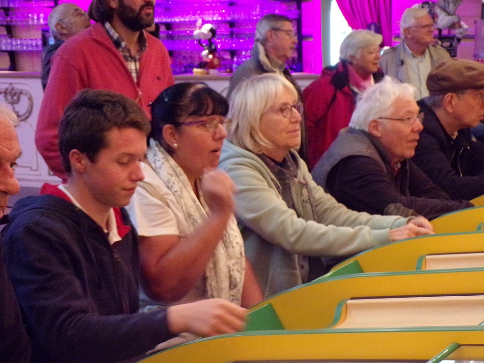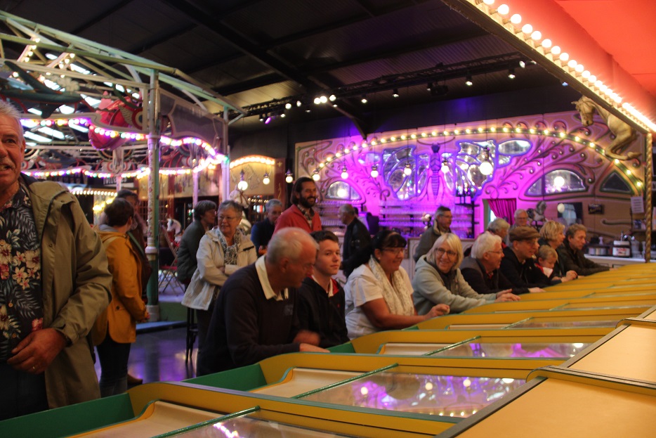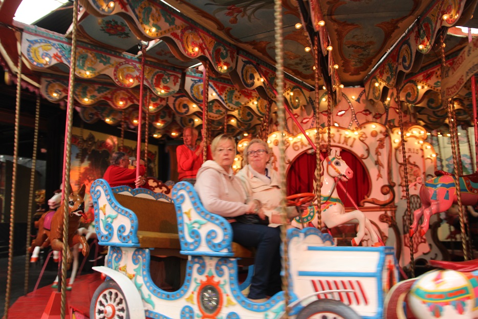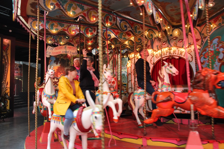 Le samedi matin, une route un peu longue emmena toute la troupe en banlieue de Lille pour visiter le Musée de la Fête Foraine, musée ayant ouvert ses portes il y a peu de temps. Quelques explications en entrée en matière puis ce furent les manèges : la chenille, les chevaux de bois … et grands et petits s’amusèrent. Il y eut aussi le stand de tir, le jeu du tiercé qui eurent beaucoup de succès, tout cela en écoutant quelques airs de musique égrenés par les orgues.
