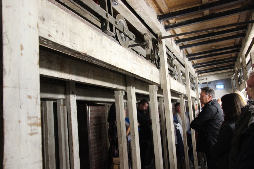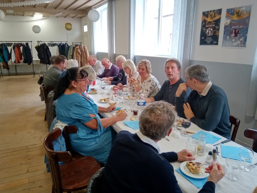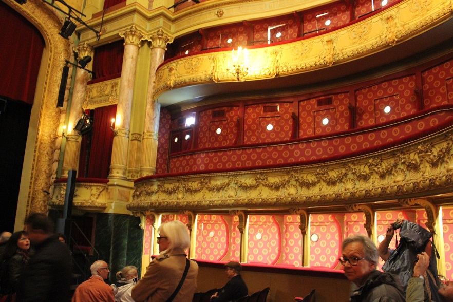 Le dimanche, la météo fut un peu plus capricieuse mais le programme a néanmoins pu se dérouler normalement. Le matin, c’est l’Hôtel de Ville de Saint-Omer et plus particulièrement le théâtre qu’il abrite qui fut l’objet de la visite. Bien sùr, nous avons admiré ce théâtre à l’italienne mais mous en avons visité aussi les parties usuellement cachées. Quelques kilomètres et il fallait se restaurer, ce fut l’occasion de goûter un très bon waterzoï.