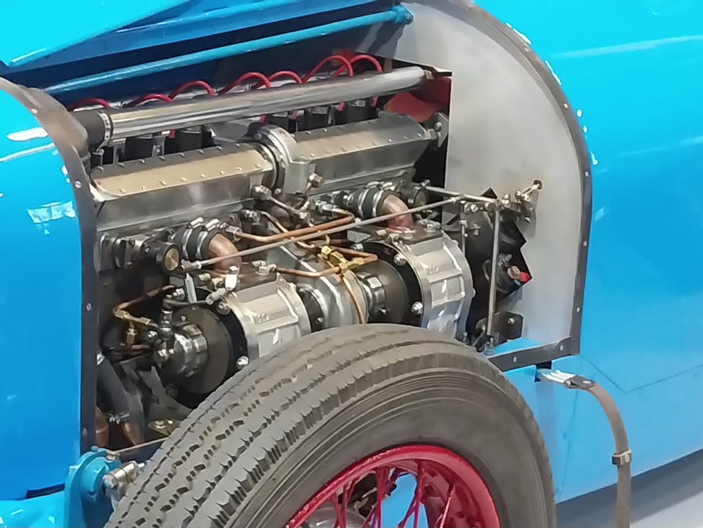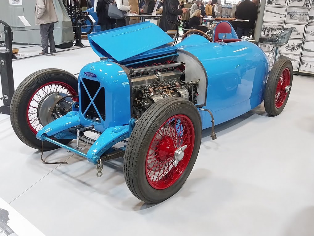 Salmson 1927-28, 8 cylindres en ligne, 2 compresseurs Cozette, 1092cm3, plus de 50 victoires dans différents Grands Prix, unique survivante sur les 2 modèles construits..