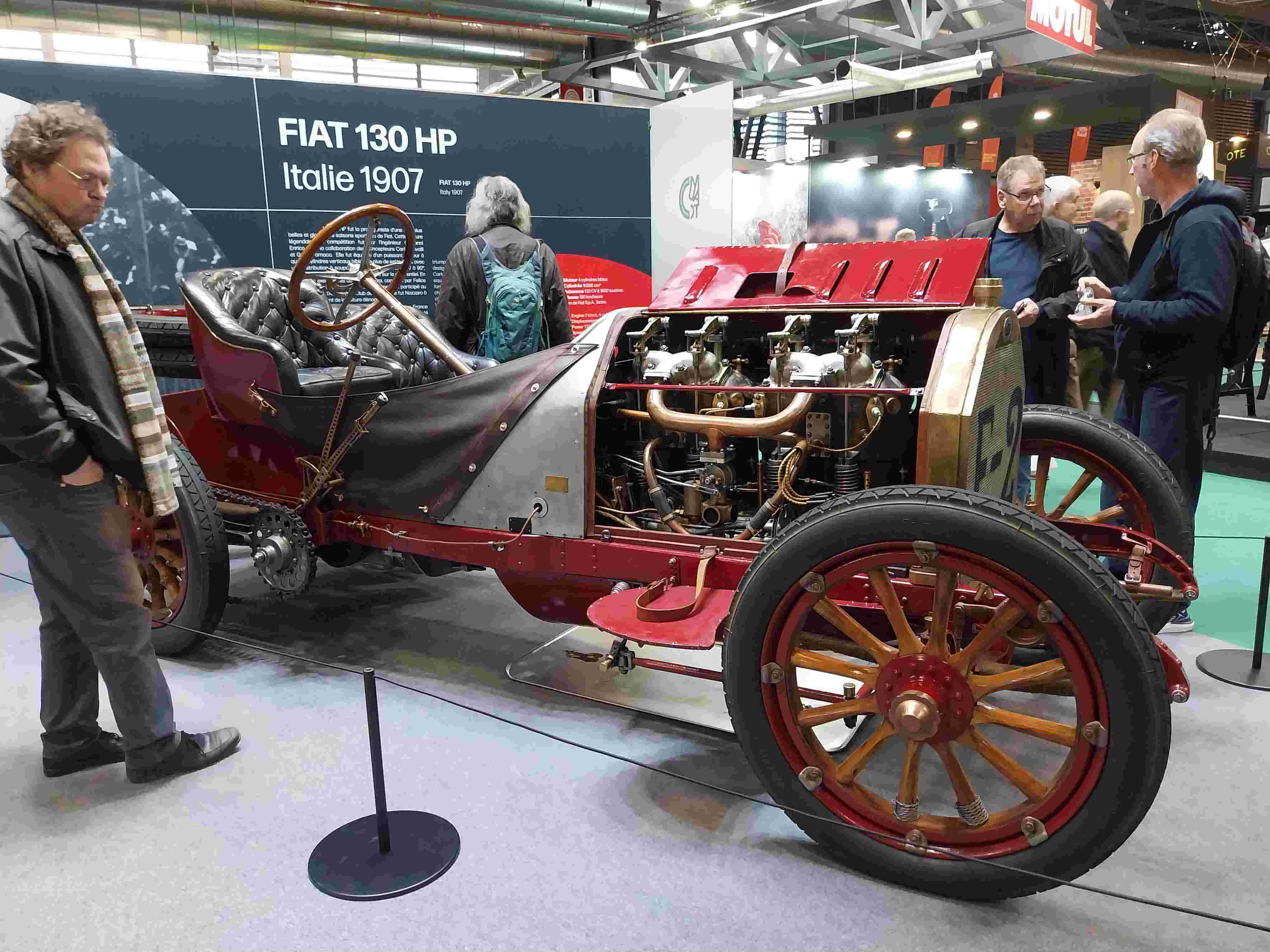 Fiat 130HP, 1907, 4 cylindres, 16 286 cm3, 130CV à 1600 trs/mn. Malheureusement je n’ai pas pu assister à son démarrage qui doit être spectaculaire…