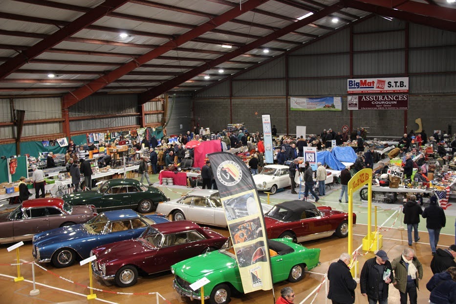 Le club Matra Passion présentait une rare version de la Rancho, ancêtre de nos SUV, un coupé trônait sur le stand NSU, voisinant un curieux moteur nautique. En cette année des 90 ans de la Traction, c’est une vieille dame très active qui avait la vedette, la 11 de Laurent Mazuy qui a parcouru l’Europe dans tous les sens. Les clubs CAIMAN et SOLEX SPIRALES assuraient la partie 2 roues, avec en outre un plateau de mobylettes richement doté sur la mezzanine ; l’historien local Guy LEMAIRE présentait à leurs côtés ses 2 récents ouvrages sur les courses du camp du drap d’or et sur la période après-guerre, notamment les courses