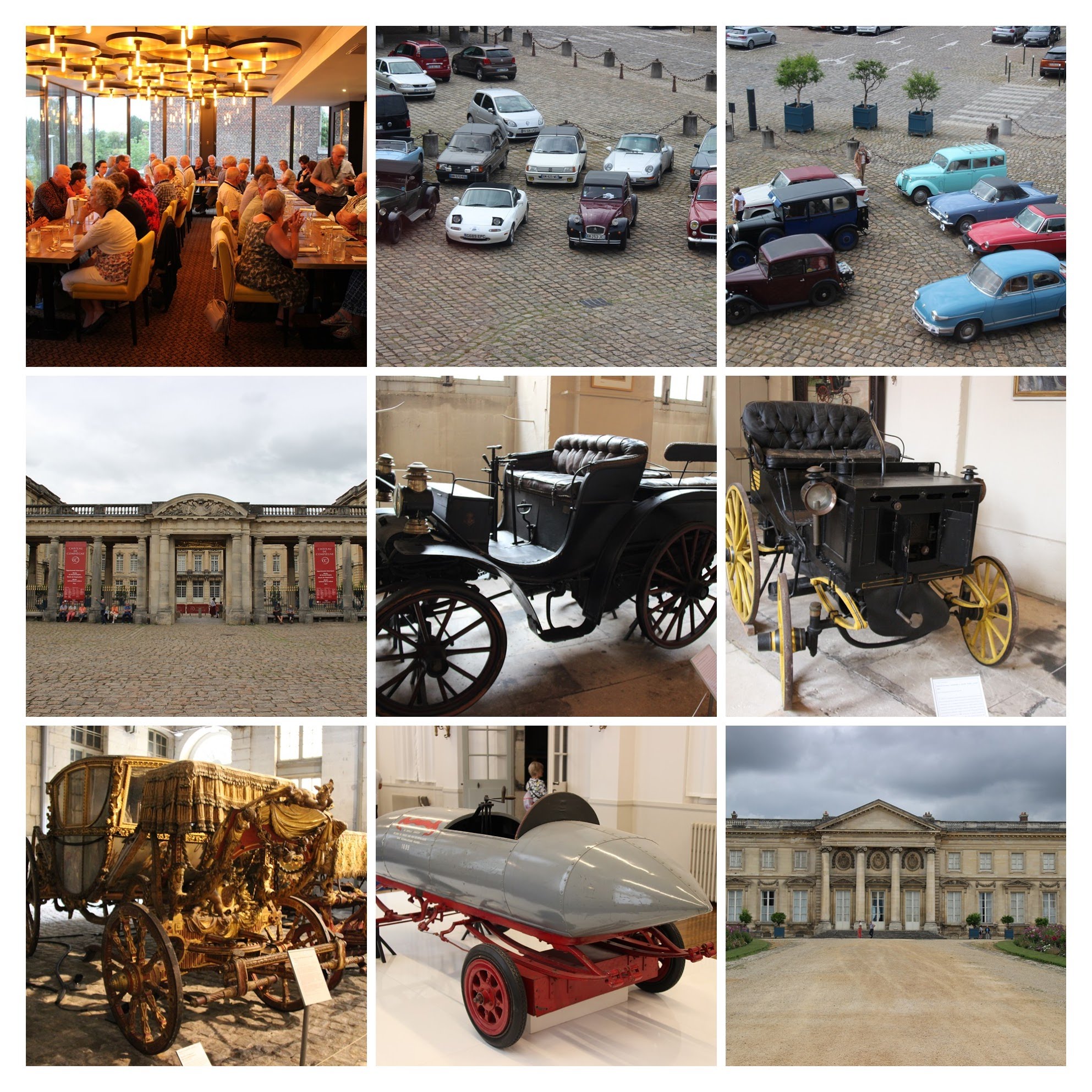 Les samedi matin et début d’après-midi sont consacrés à la visite des appartements impériaux du château de Compiègne d’une part et du musée de la voiture (accueilli dans une aile du château) qui comporte aussi bien des automobiles que toutes sortes de voitures hippomobiles des 18ème et 19ème siècles, ainsi que quelques vélos et motos. Pour l’occasion nos voitures ont pu stationner, le temps de notre visite, devant les grilles de la cour d’honneur.
