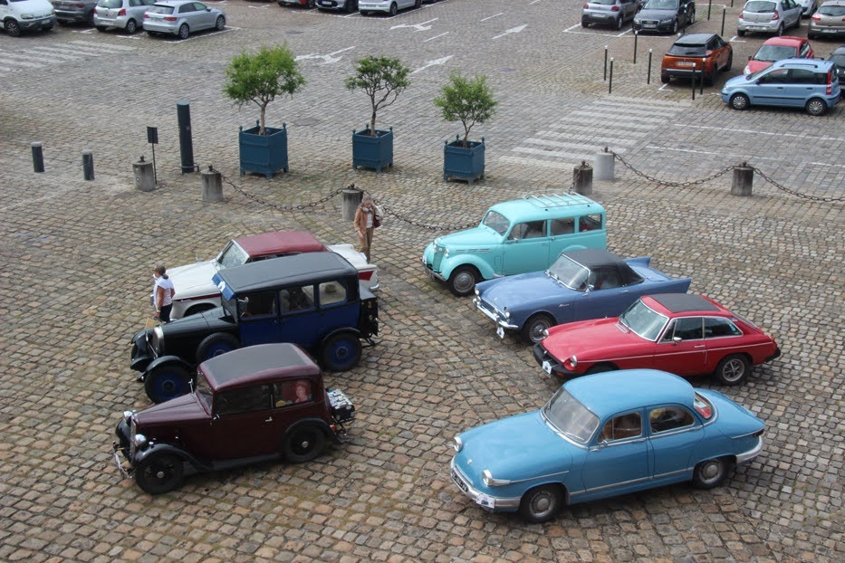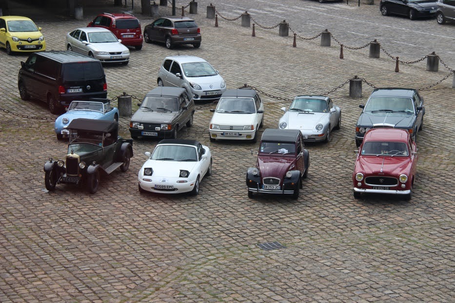 Les voitures participantes comprennent 3 avant-guerre : une Citroën B14G de 1928 (qui pour rejoindre Compiègne a déjà fait près de 1000km, venant de Pau), une Riley 9 de 1929 et une Austin Seven de 1936. Les autres voitures s’étalent des années 60 aux années 90. L’organisateur et 2 autres équipages sont en voiture moderne pour cause de préparation insuffisante du véhicule prévu…
