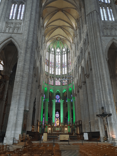 A Beauvais, une ligne de bus passait tout près de l’hôtel et nous amenait en centre ville pour y visiter la cathédrale, certes jamais achevée, aux proportions gigantesques : les voûtes sont à 47m de hauteur et constituent le record absolu en architecture gothique.