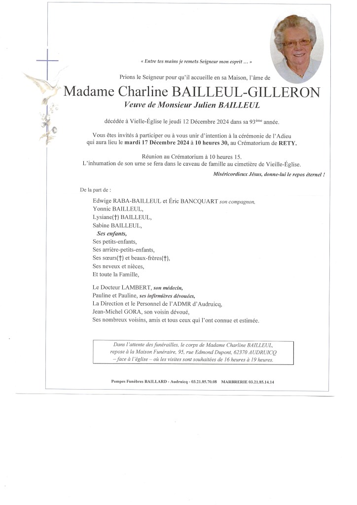 Vous trouverez ci-dessous le faire-part annonçant son décès :
