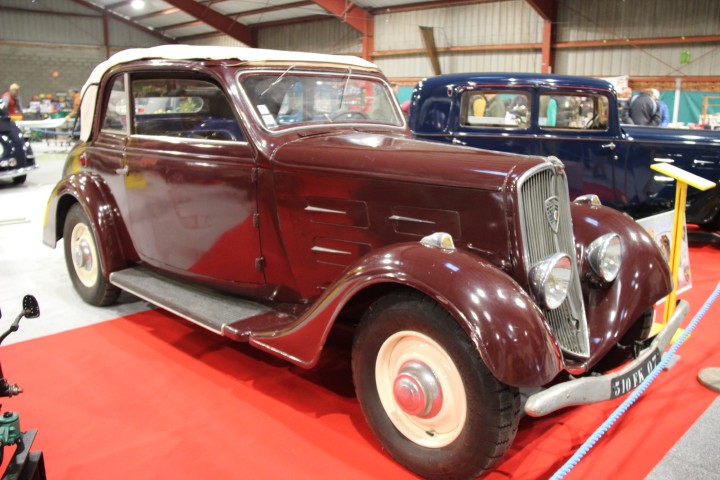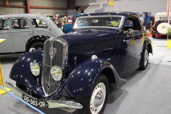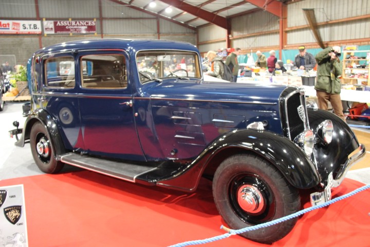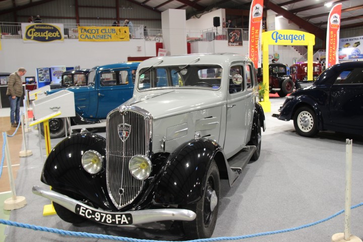 Le thème de l’exposition centrale était cette fois les Peugeot de la série 01 et couvrait donc les 201, 301, 401 et 601. L’exposition, montée par le club Les Amis des Peugeot 01, permettait d’avoir un aperçu de la variété des différents modèles mais il faudrait plusieurs bâtiments tels que la salle qui nous abrite pour pouvoir exposer toutes les variantes que cette série a comprises, à supposer qu’il en existe encore de toutes les versions. Ces voitures couvrent donc la période de 1929 à 1937 et tous les ans les modèles évoluaient dans leur aspect, ce qui nous amène au-delà des cent versions différentes. La première de la série fut la 201 en 1929 qui fut construite jusque 1937 ; la 301 fut produite de 1932 à 1936 ; la 401 et la 601 eurent une carrière assez courte de 1934 à 1935. Voici celles que vous pouviez admirer ce dimanche à Audruicq :