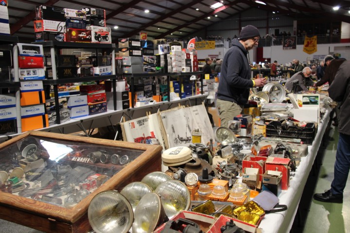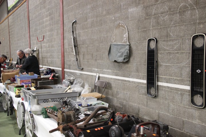 Les étals de pièces, de documentations, que ce soit pour les voitures ou pour les 2 roues se partageaient l’espace. Les miniatures complétaient ces stands avec les fournisseurs d’outillage, de produits d’entretien…Une exposition complémentaire de cycles et mobylettes occupait la mezzanine. Par contre, cette année, les professionnels tels que selliers, peintres, carrossiers…nous ont fait défaut.