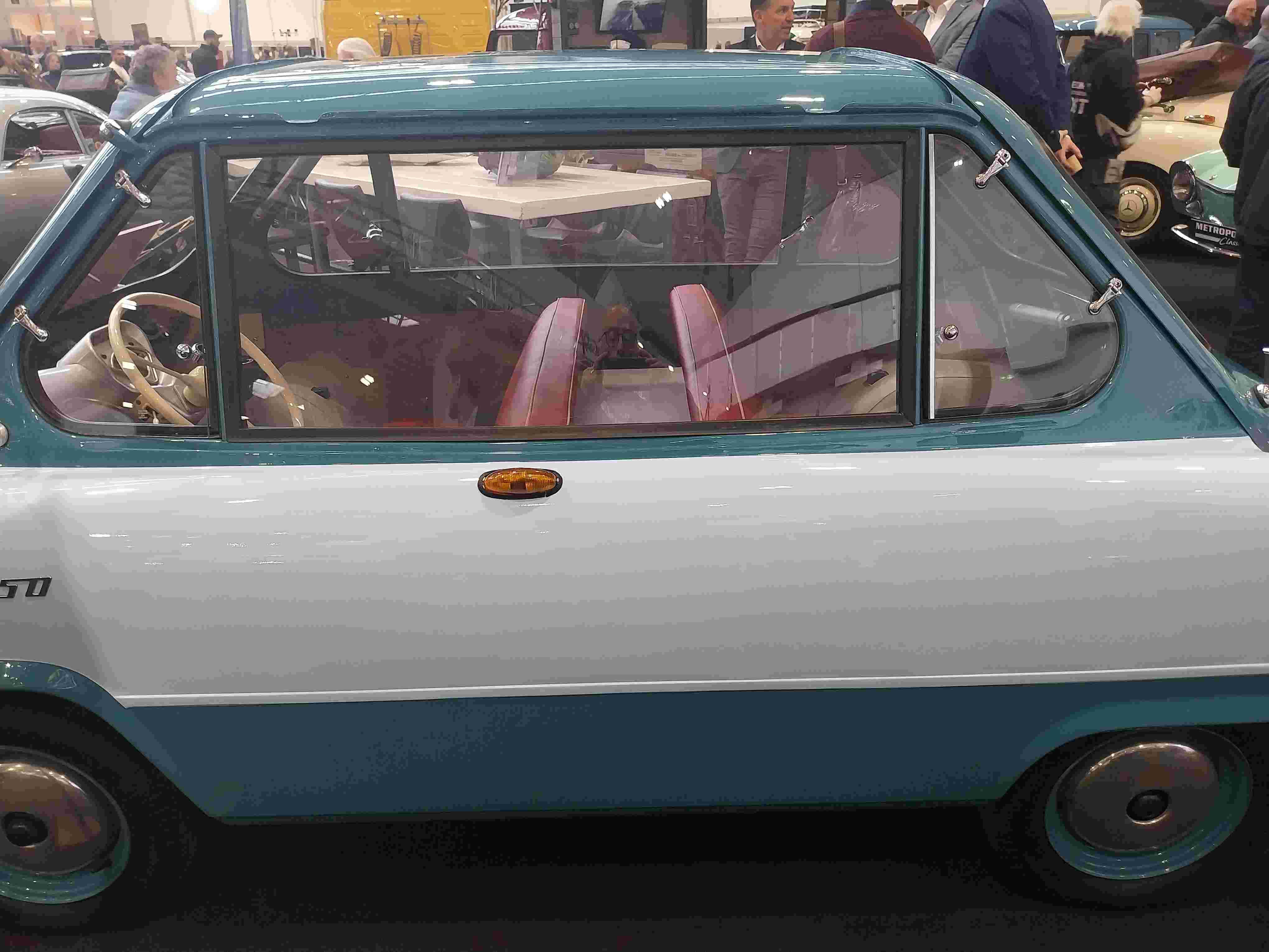 Il n’y a pas que des modèles de luxe, il y a aussi des voitures « populaires » et aussi un certain nombre de microcars mais à des prix toujours élevés, il faut dire qu’ils sont étincelants…On y trouve bien sûr les Isetta BMW, Messerschmitt KR, Zündapp Janus à la carrosserie strictement symétrique entre l’avant et l’arrière :