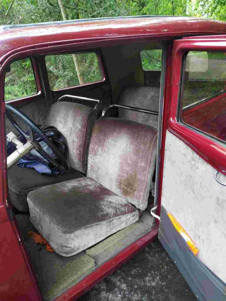 Un de nos amis vend une voiture rare, il s’agit d’une Berliet, modèle Dauphine de 1935 (deuxième nez et malle arrière différente) équipée d’un moteur de 2 litres, en très bon état général et suivie en entretien, pneus OK (2 neufs à l’arrière), échappement neuf, bague laiton de suspension avant droite neuve, disques amortisseurs avant neufs, entretien fait au printemps avant le rallye de Fougères, où elle a parcouru 650 km en 4 jours sans soucis. Intérieur en très bon état, restauré aux alentours de 2005, mais les 4 ailes viennent d’être repeintes, un peu de travail à prévoir sur la partie rouge pour être état concours. Fournie avec une Dynastar remise à neuf, et un jeu complet de jantes