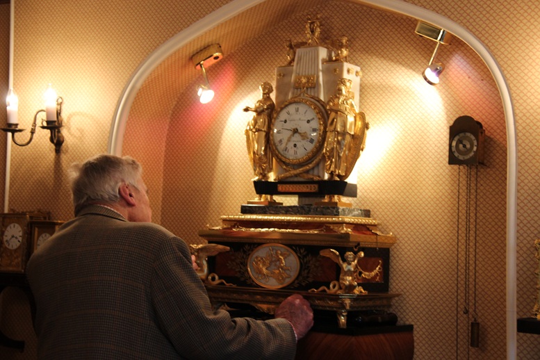 - les horloges : il en a 400 et elles sont toutes en fonctionnement, réparties dans l’ensemble de son habitation et représentant quatre siècles d’horlogerie, certaines contenant bien sûr des boîtes à musique, des petits orgues, des carillons.